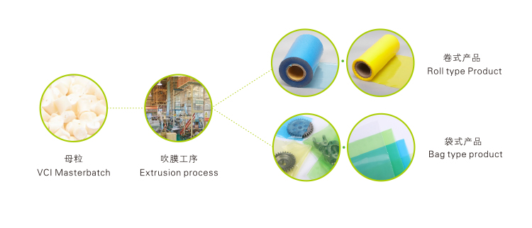 應(yīng)用范圍: 適用于氣相防銹塑料薄膜類產(chǎn)品、氣相防銹熱收縮膜及氣相防銹珍珠棉的擠出吹塑加工,其他防銹塑料類制品的應(yīng)用需通過工藝確定。